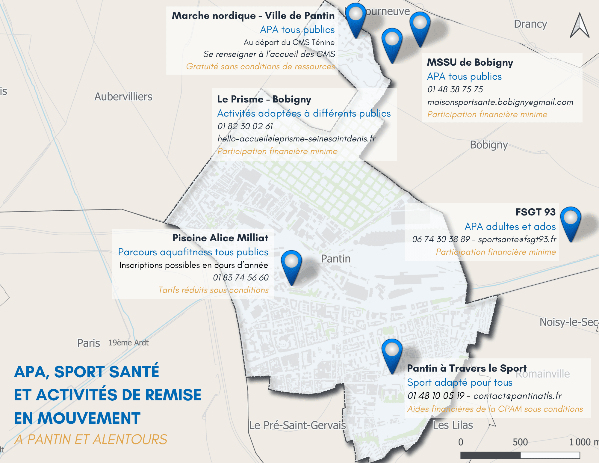 La Maison Sport Santé Universitaire de Bobigny propose des ateliers d’activité physique adaptée ouverts à tous les publics, animés par des enseignants APA. Une participation financière minime est demandée.