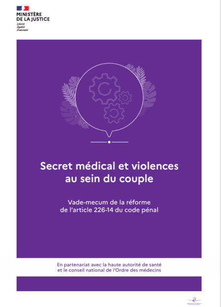En collaboration avec la Haute Autorité de Santé et le Conseil de l’Ordre des médecins, le ministère de la Justice a élaboré un vade-mecum sur la réforme de l’article 226-14 du Code pénal, portant sur le secret médical et les violences conjugales.