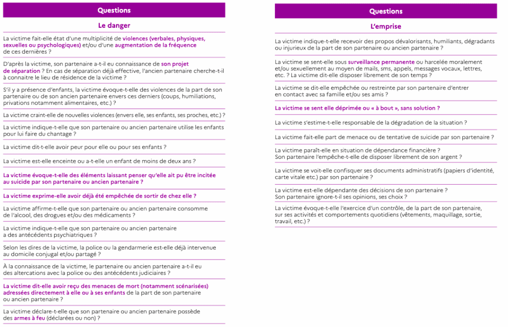 ⚠️ Important : le-a professionnel-le ne doit pas se prononcer sur la véracité des faits, qualifier les violences de “volontaires” ou “involontaires”, attribuer la responsabilité à un tiers ou propose une interprétation des évènements.